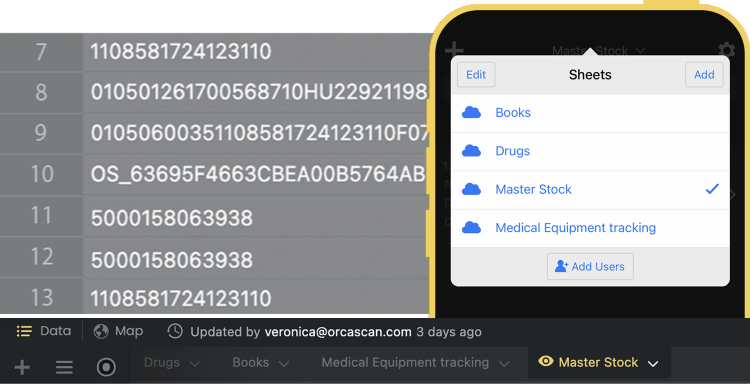 You can think of a sheet as a single tab in a spreadsheet; however in Orca Scan each sheet acts as a real-time database from which the mobile app can push and pull data for multiple users.